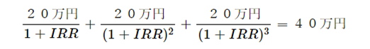 IRRは投資の支出額の現在価値と、将来投資により得られるキャッシュフローの現在価値の総和が等しくなるような割引率のことです。