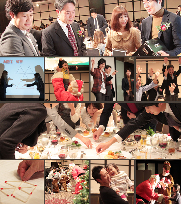 これも恒例となったゲーム大会。お客様と営業担当がチームを組んで競いました。お客様に賞品を勝ち取っていただけるよう、必死にがんばる担当営業。当社の社員は、ゲームであっても全力で、お客様と楽しい時間を過ごすことができました。今年は、お子様たちのためにサンタクロースも登場。かわいいクリスマスプレゼントが手渡されました。