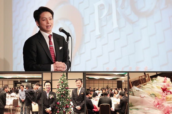 お客様との楽しい時間もあっという間。「オーナー謝恩パーティー」は、当社代表の中西のご挨拶で締めくくりとなりました。今年の暮れは政権交代という大きな舵を切った日本。中西は、政局変動による経済政策の変化など、大局的な見地からの見通しにも触れ、今後もお客様に満足していただけるような戦略を推し進めていくことをお約束しました。これからも、より健全で、貢献度の高いサービスを提供できる会社を目指して。プロパティエージェントでは、新たに不動産全般に関する相談サービスを事業化するなど、お客様に貢献できる取り組みを積極的に推進していきます。プロパティエージェントのロイヤリティ向上に努める決意をお伝えして、閉幕となりました。