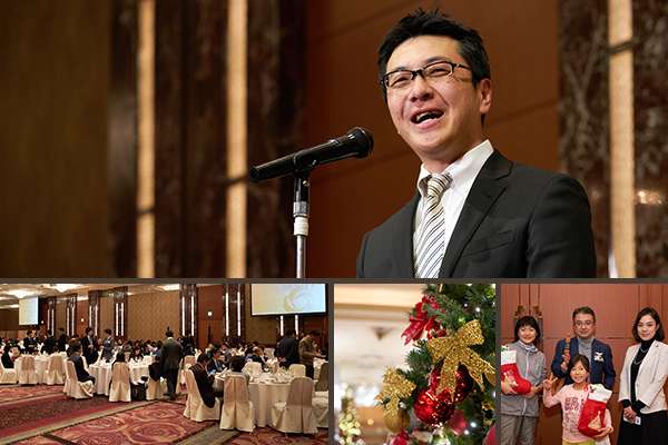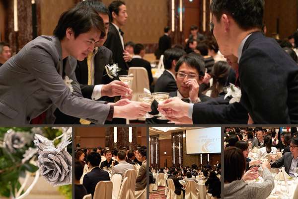 今年も、乾杯の音頭は営業部部長の村田がつとめさせていただきました。最後はしどろもどろになりながらも、オーナーの皆様方から温かい激励の拍手をいただいて無事、乾杯のご挨拶を終えることができました。日頃はお客様とお会いする機会の少ないスタッフ部門の社員もお客様と触れ合える謝恩パーティーは、私どもにとって一番楽しみな時でもあります。村田からも、オーナー様と一緒に成長していきたいという想いや、自分自身がオーナー様から育てられている立場であるという感謝の言葉を語らせていただきました。