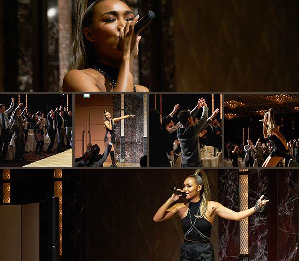 今年のスペシャルゲストは、クリスタル ケイさん。卓越した歌唱力で観るもの全てを圧倒する実力派シンガーです。1999年13歳でデビューし「恋におちたら」「Boyfriend -partⅡ-」などのヒット曲で大ブレイク。2013年からNYにも拠点を置き、アーティストとして更なる進化を遂げている国際派シンガー。デビュー18年目を迎えてセクシーさにも磨きがかかります。「everybody jump!」の掛け声で、お客様も立ち上がり、一緒にジャンプしてノリノリのステージ。バラード曲でも「まだ座らないで(笑)」と、盛り上げ方もうまい。圧巻のステージを楽しむことができました。